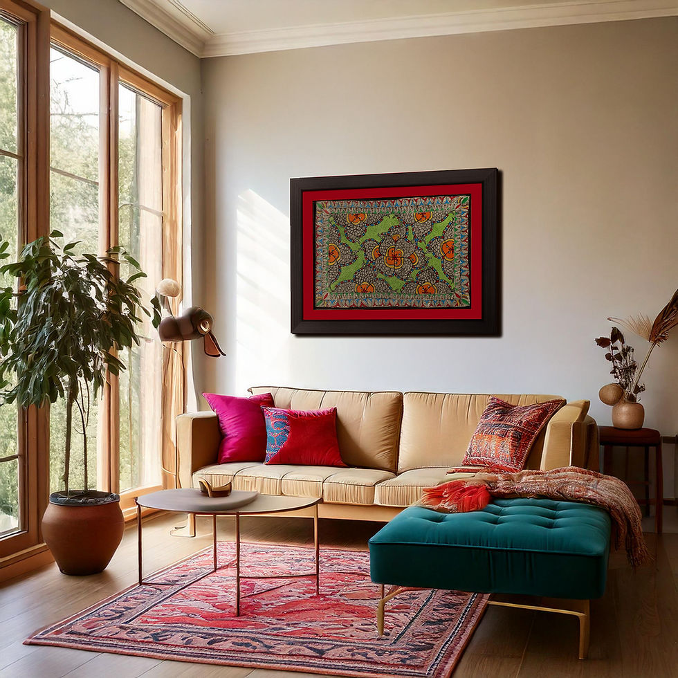 Explore our complete collection of handcrafted Madhubani artworks, including single pieces, two-panel sets, and curated sets of four. Each artwork is hand-painted by skilled artisans, celebrating India’s rich folk art traditions through timeless symbolism, intricate detailing, and refined presentation.
